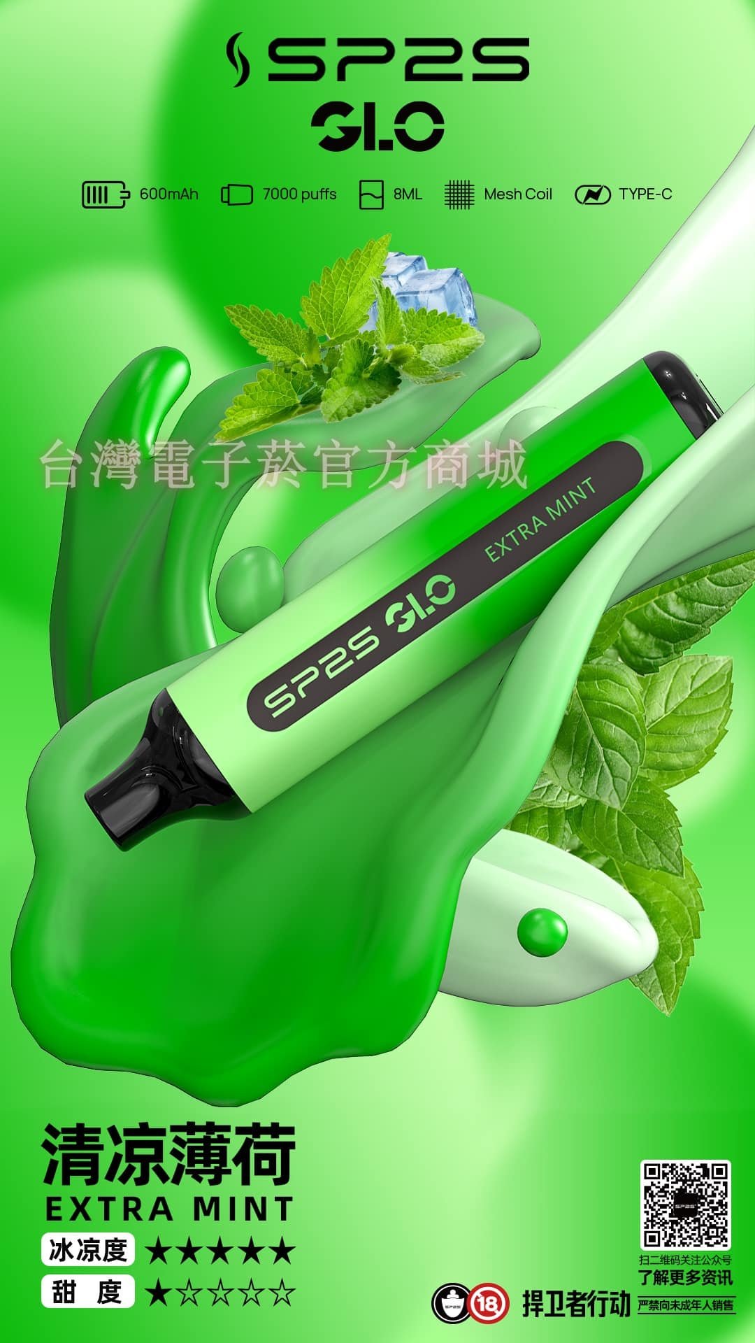 SP2S GLO 系列正式登場,匠心打造全新 7000口大容量設計,結合 8ml超大煙油、30mg/mL 尼古丁濃度(3%),讓每一次吸入都如初戀般驚艷!
